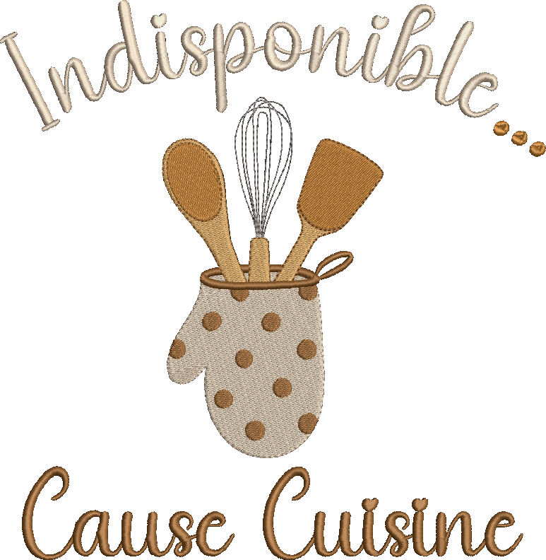 Motif de Broderie Machine "Indisponible... Cause Cuisine"