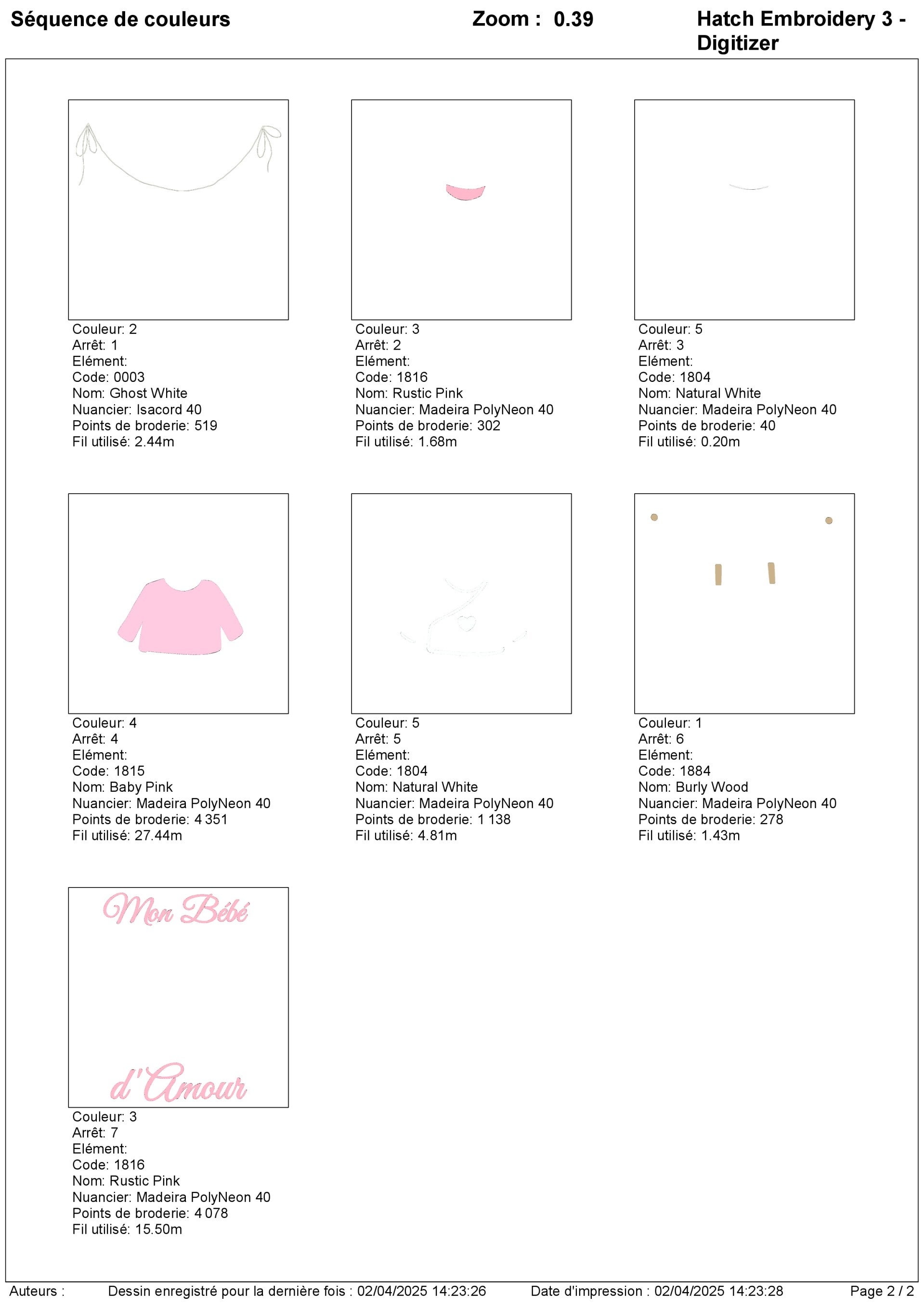 Pour toutes les tailles proposées, vous trouverez dans les photos de l'article une fiche de travail détaillée comprenant :