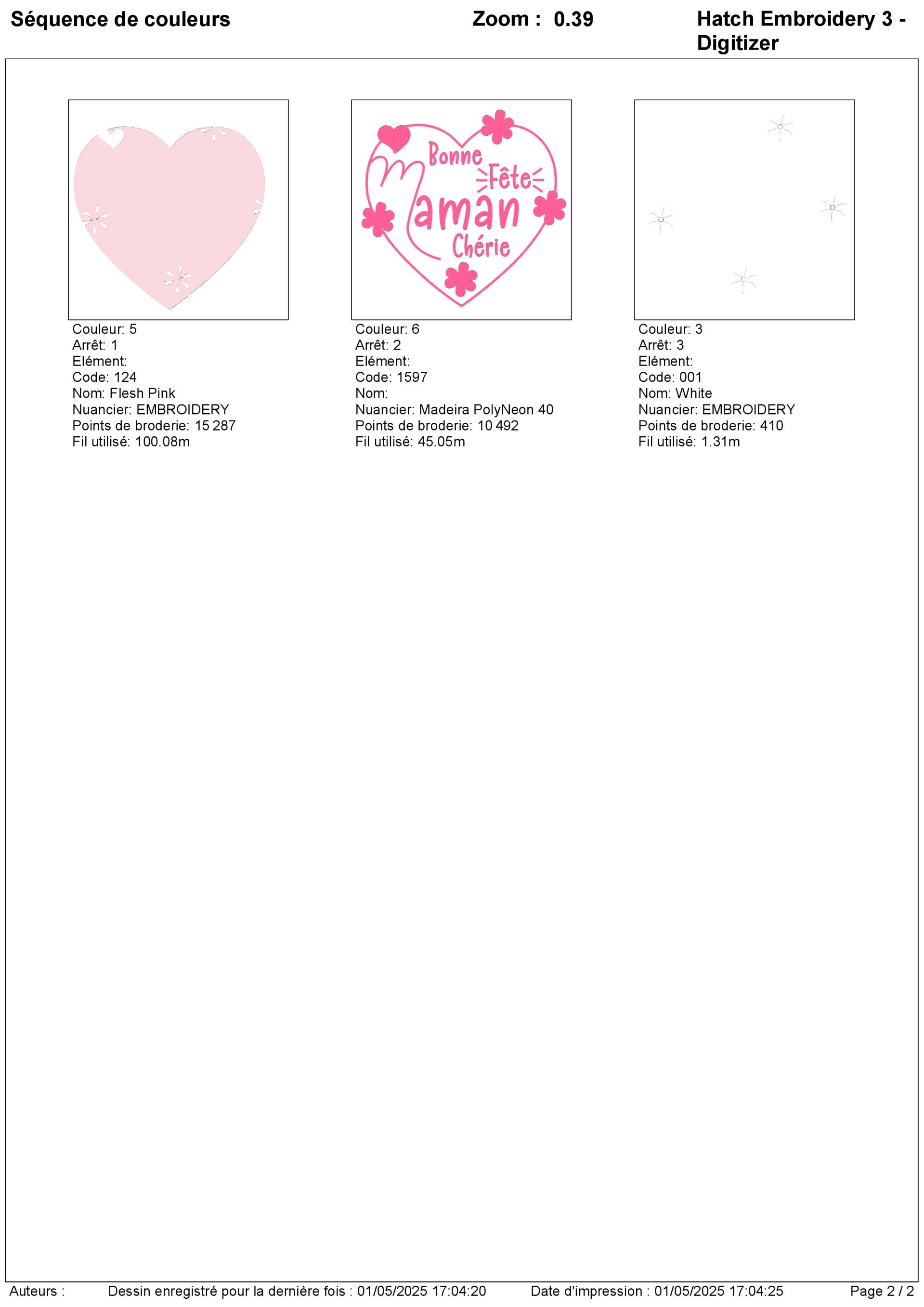 Exprimez tout votre amour avec ce motif de broderie en forme de cœur, orné de fleurs et du message "Bonne fête Maman chérie" ! Parfait pour personnaliser un cadeau de fête des mères ou décorer vos créations textiles avec tendresse.